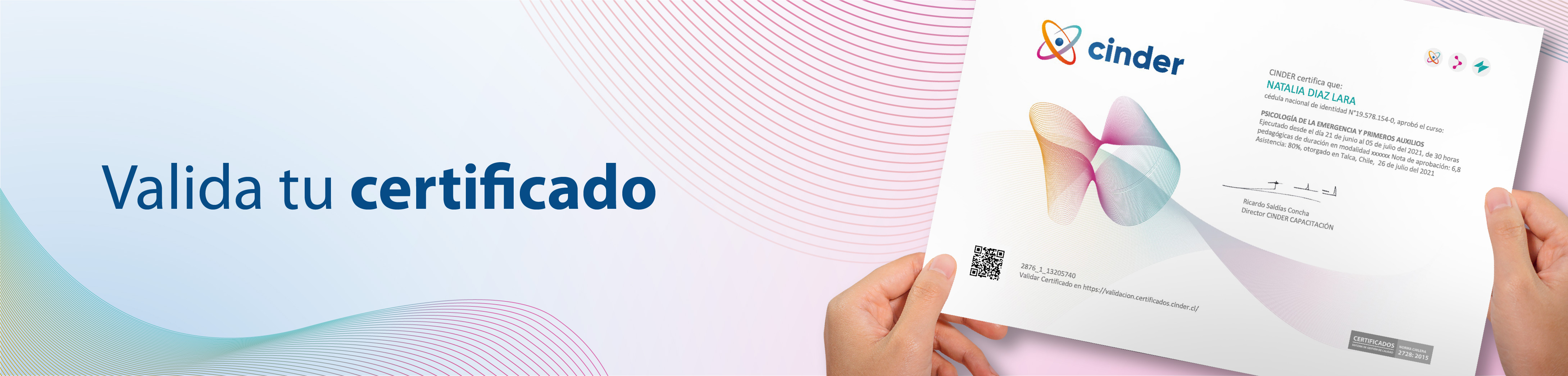 Para verificar tu certificado debes ingresar el Código de Verificación en el caso de los certificados; o el número que aparece al lado derecho del codigo QR de los diplomas.